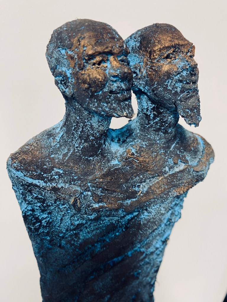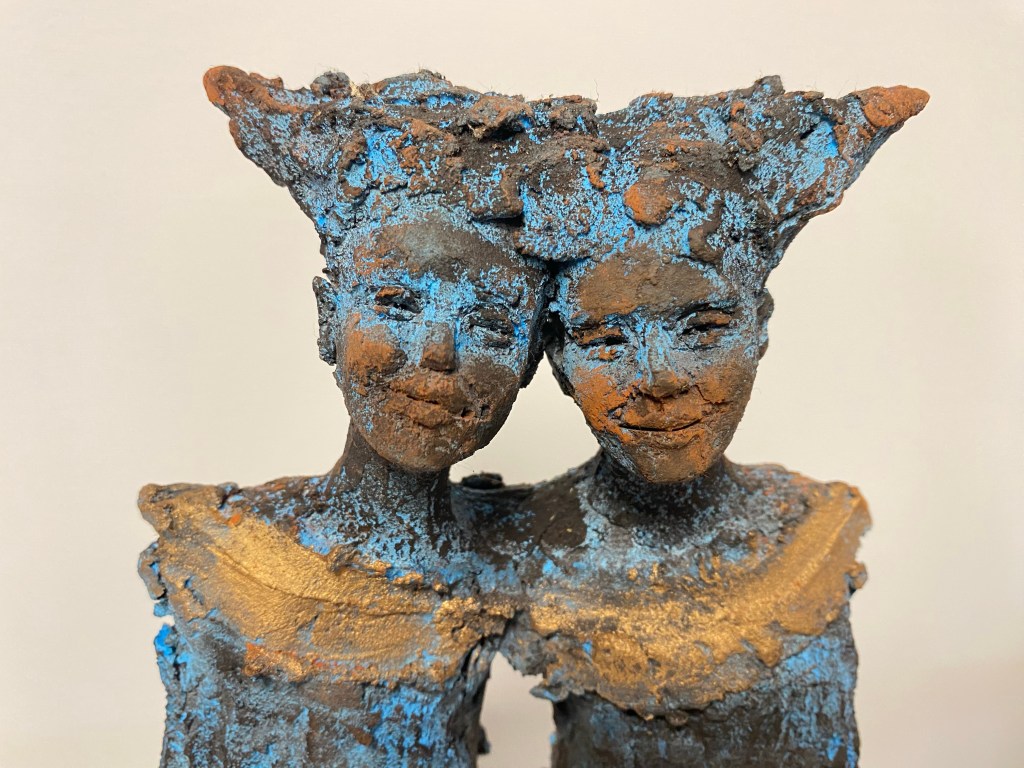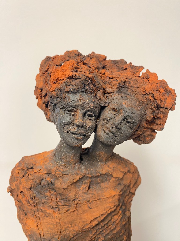 Réalisés en grès, mes sculptures « Ames soeurs, Ames frères » témoignent de la Joie intérieure, l’Union et la Ré-union entre les êtres.