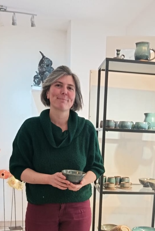 Pascale travaille les grés, tourne, sculpte, façonne, craquelle, fabrique ses émaux à base de cendres végétales.