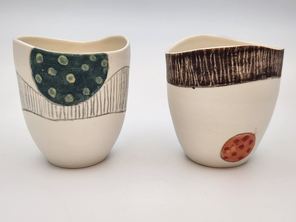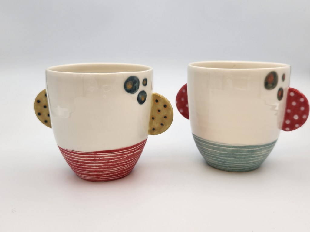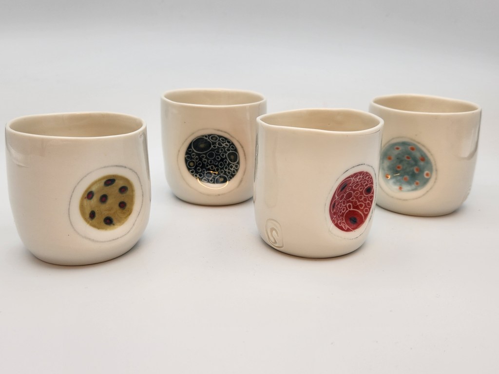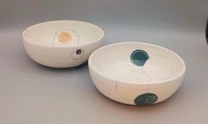 Ma production principale se compose de pièces utilitaires en porcelaine et grès.
