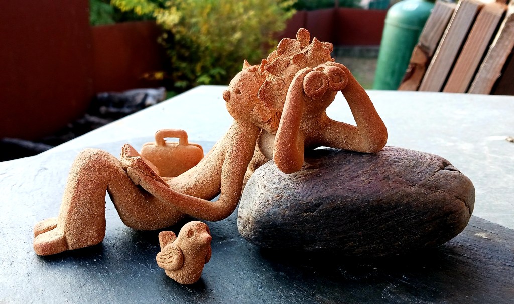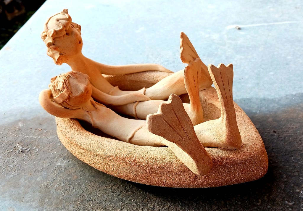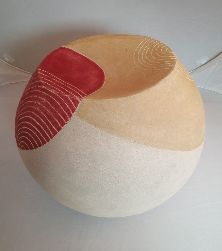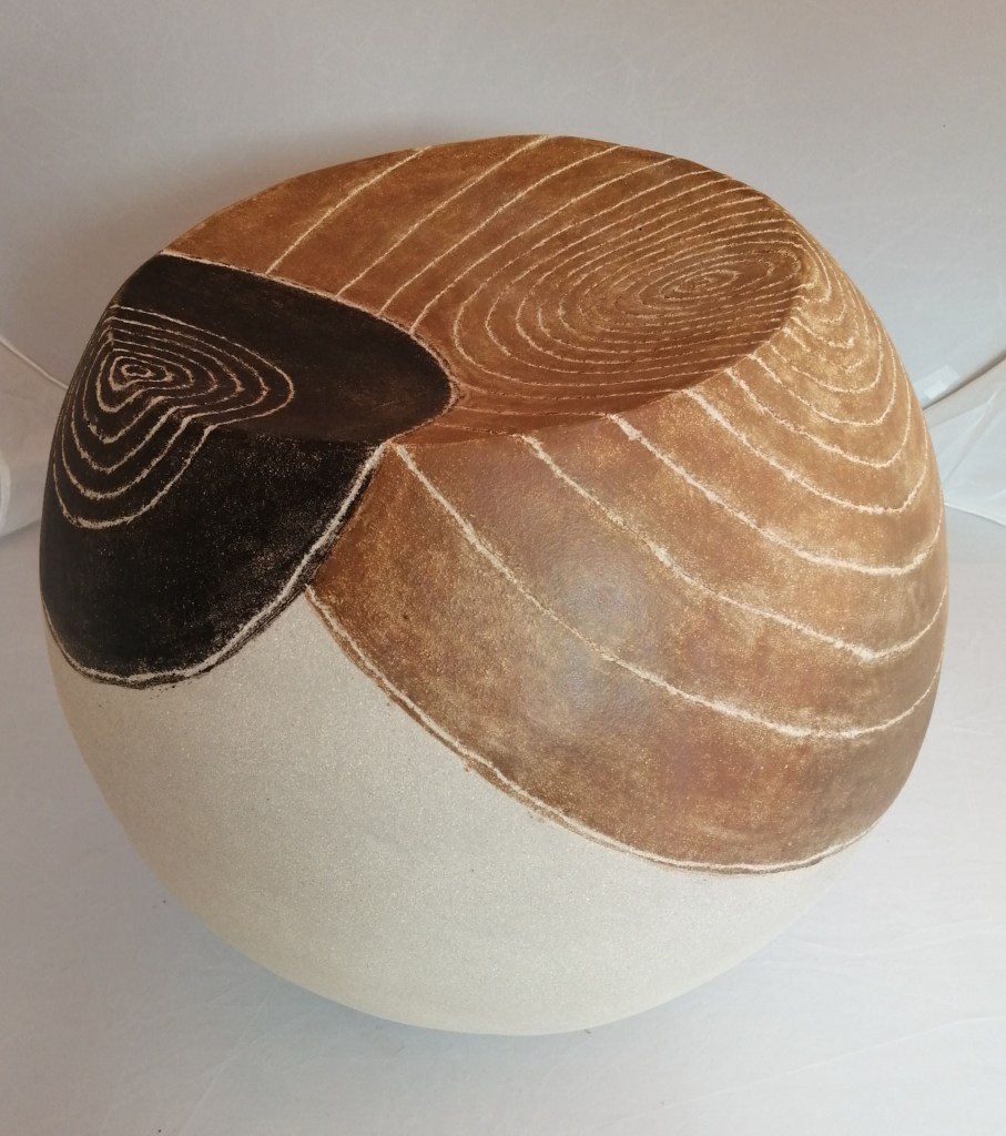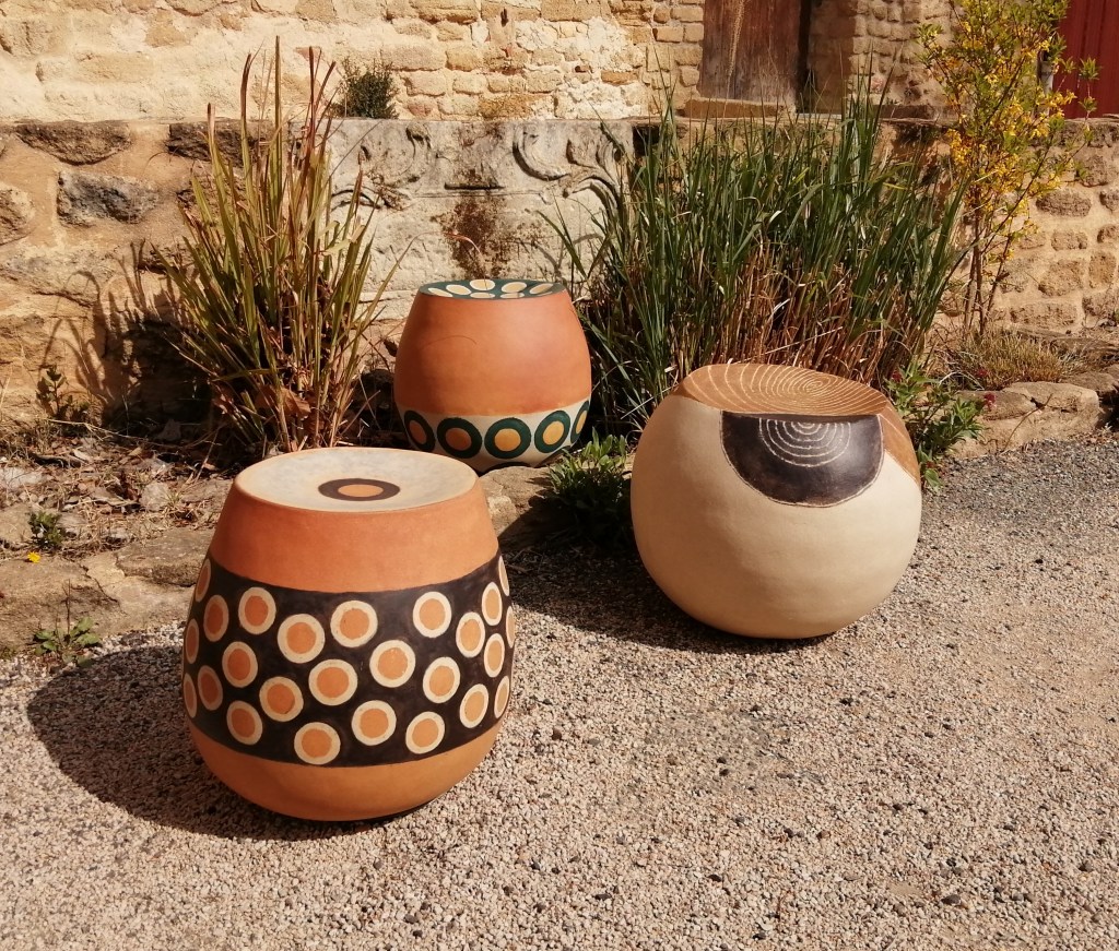 conserver une partie de la pièce en matière brute et couvrir l’autre d’un décor à l’engobe émaillé. Cependant ma production de prédilection est celle de la terre polie que je pratique depuis une vingtaine d’années. Je réalise des pièces en colombins, à la plaque et au tour.